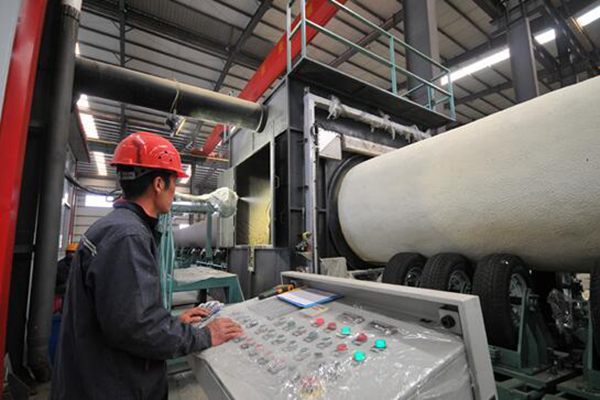 江豐集團硬質聚氨酯噴涂聚乙烯纏繞保溫管生產線正式投產